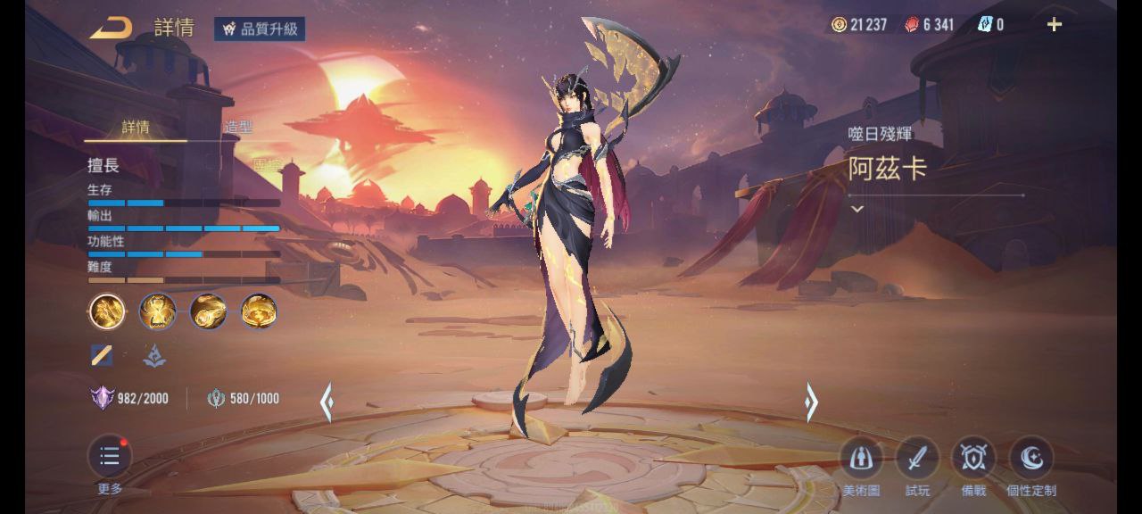 昨天打开游戏一看,哟嚯!阿兹卡女生造型终于出来了,如果你原本就有阿兹卡这个英雄的话,原本的造型会自己变成女生造...